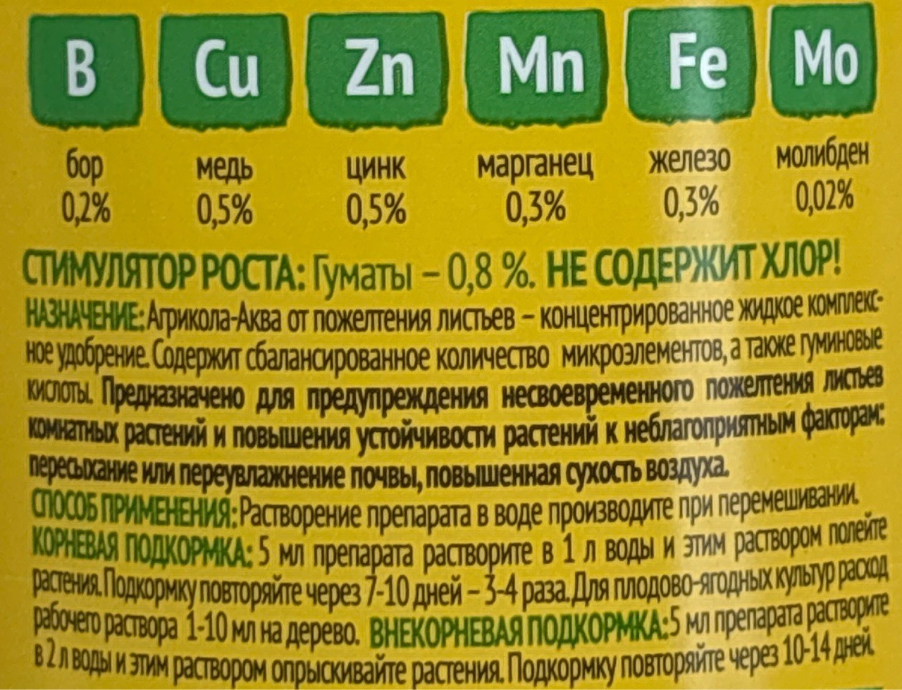 Агрикола Аква от пожелтения 250 мл