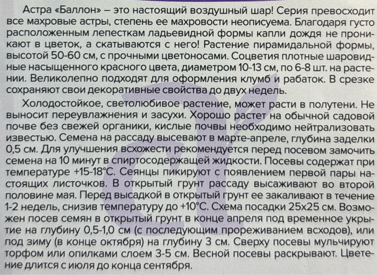 Астра Баллон красная 0,05 г махровая СМЦ-430