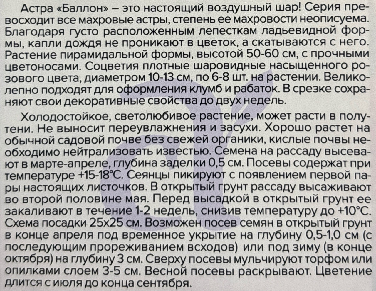 Астра Баллон розовая 0,05 г махровая СМЦ-450