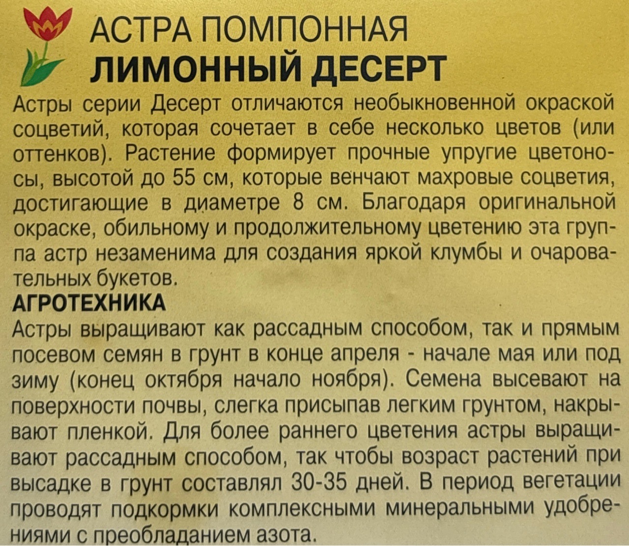 Астра Десерт Лимонный 0,2 г помпонная СМЦ-443