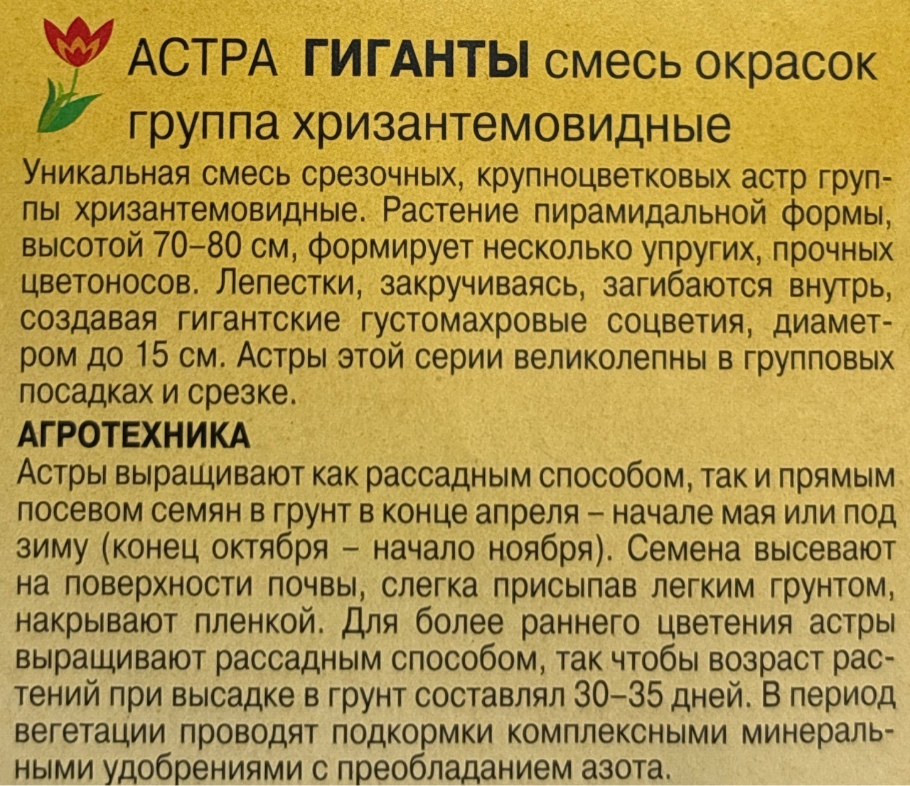 Астра Гиганты, смесь 0,2 г хризантемовидная СМЦ-416