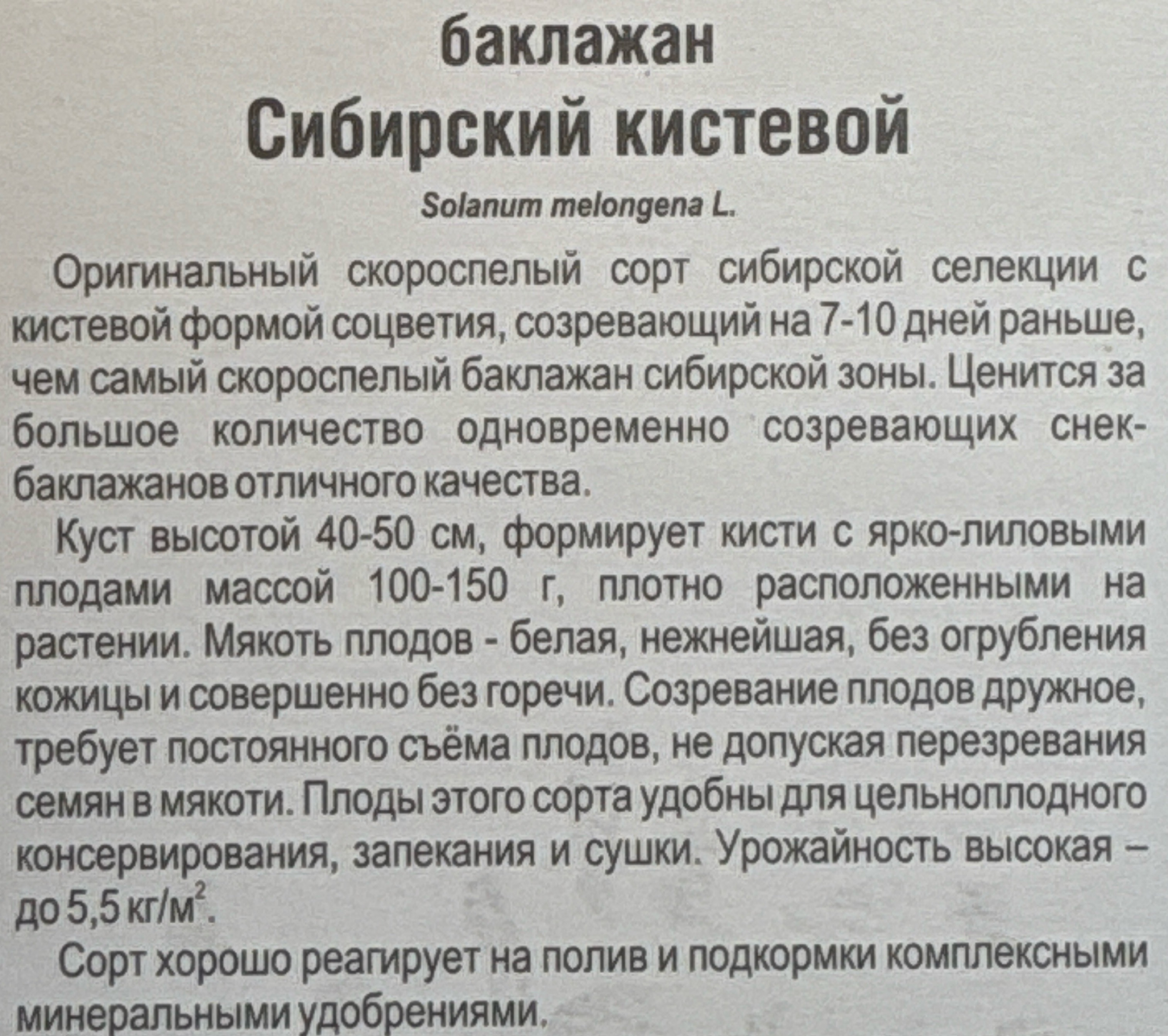 Баклажан Сибирский кистевой 20 шт СМБК-03