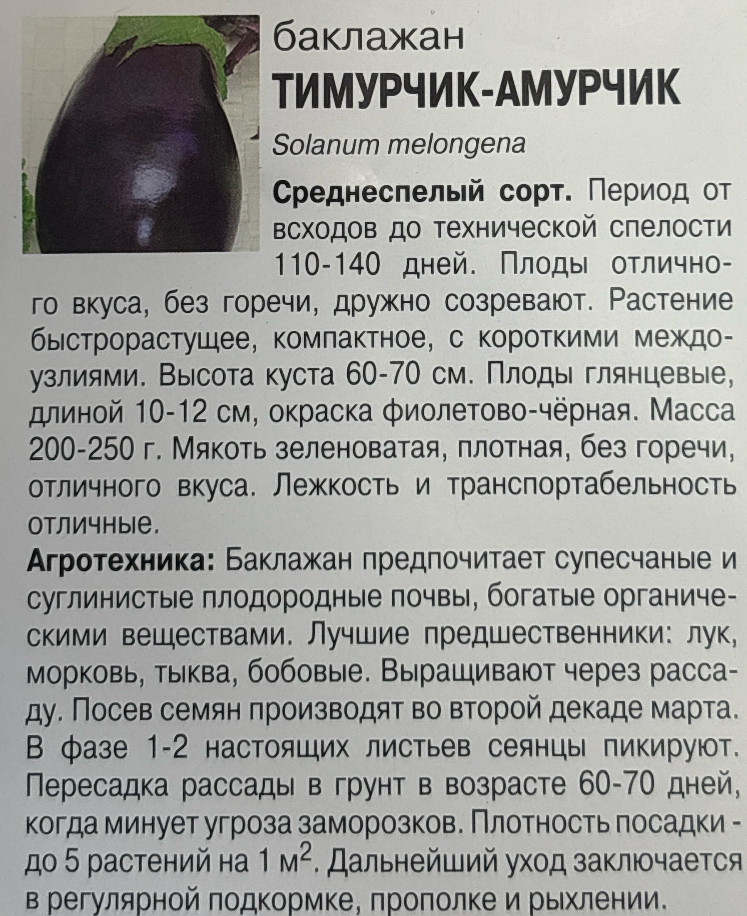 Баклажан Тимурчик-Амурчик, 0,3г., Урожай Удачи СМБАК-33