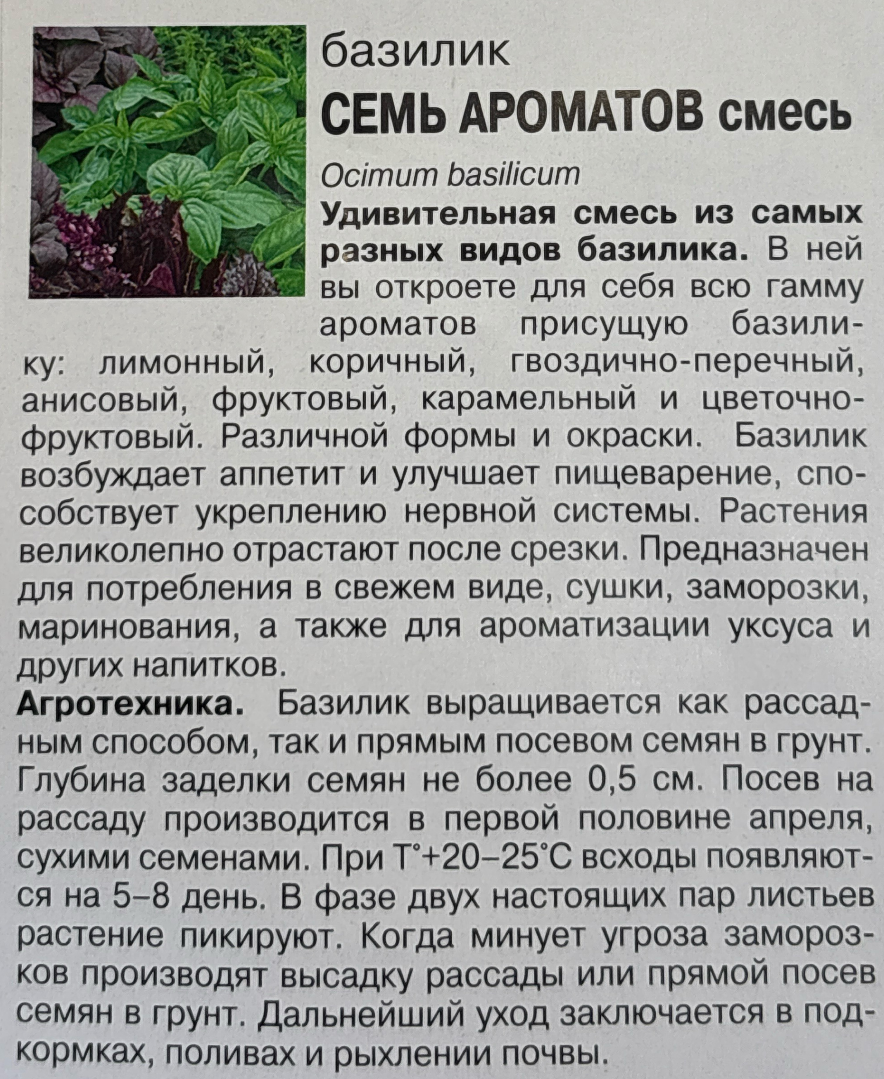 Базилик Семь ароматов смесь, 0,3г., Урожай Удачи СМЗ-141