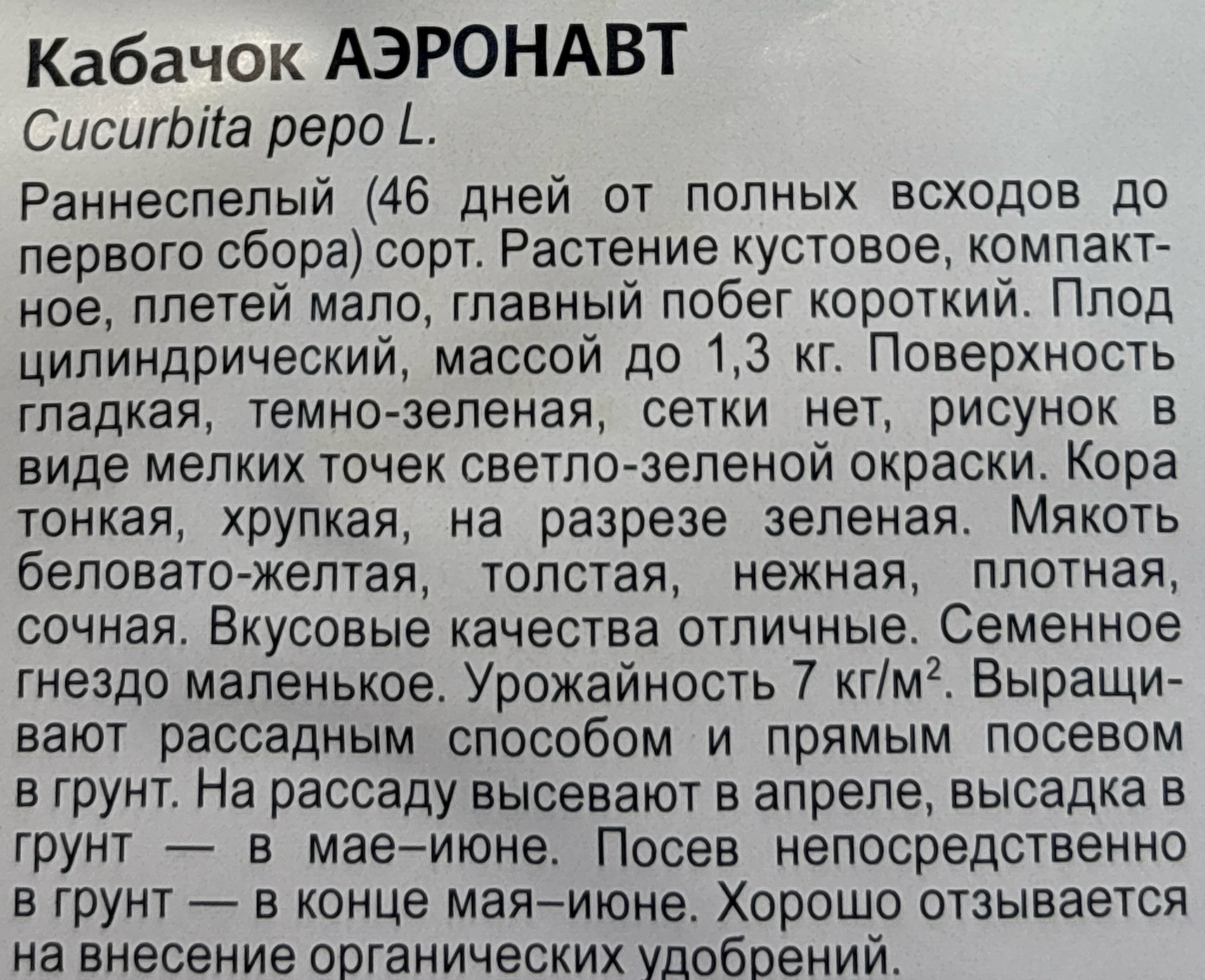 Кабачок Аэронавт 2 г (цук) СМКАБ-34