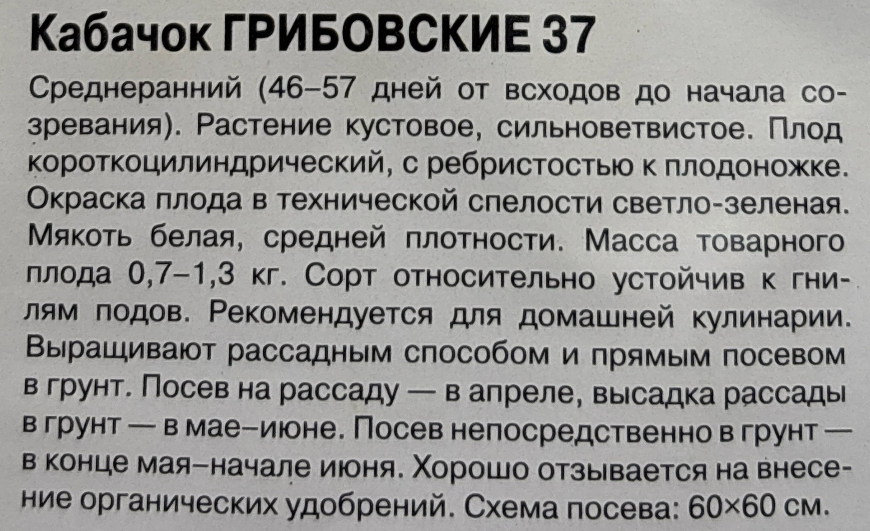 Кабачок Грибовские 37 2 г СМКАБ-30