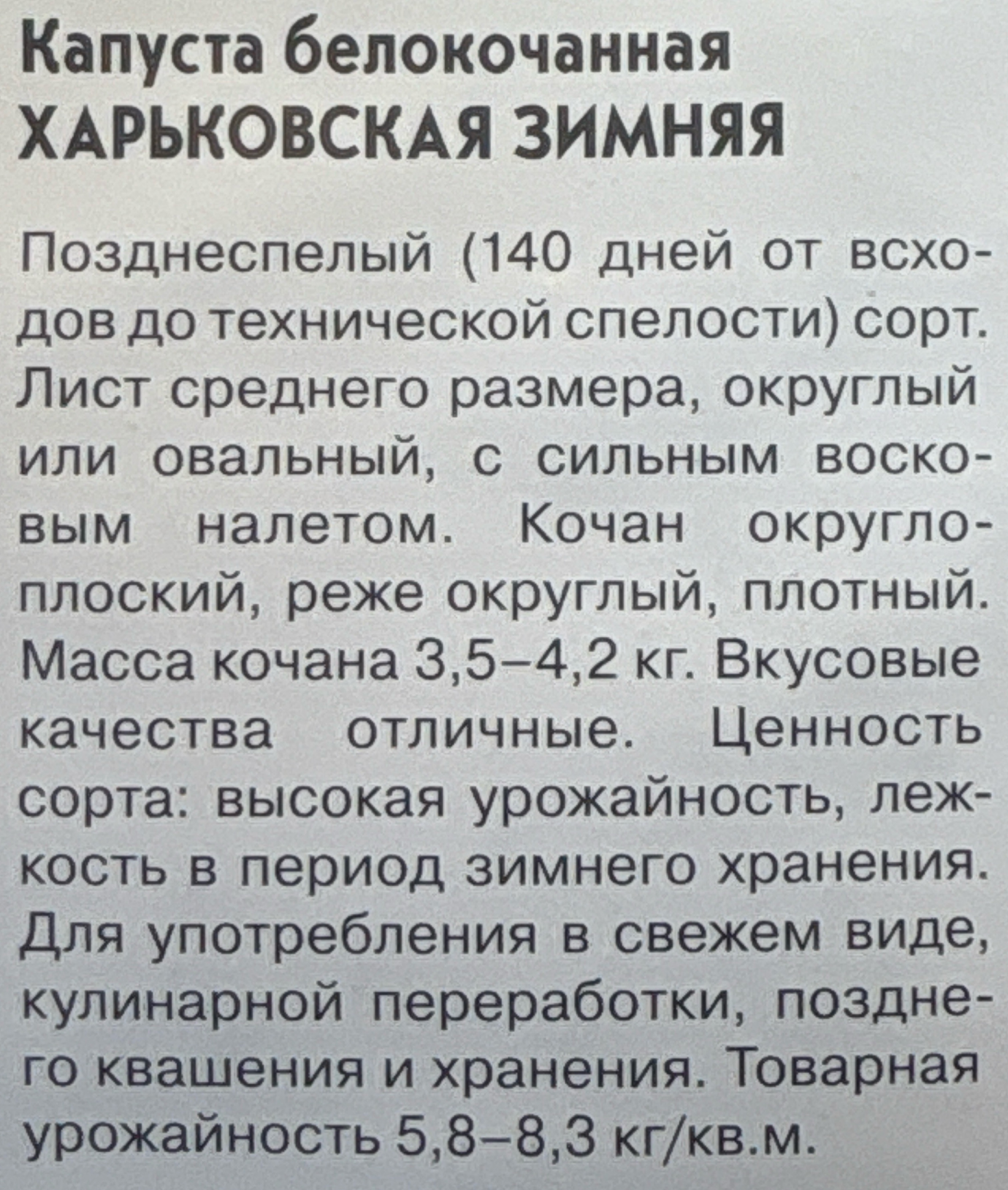 Капуста Харьковская зимняя 1,5 г Уд.с.Семян больше СМК32