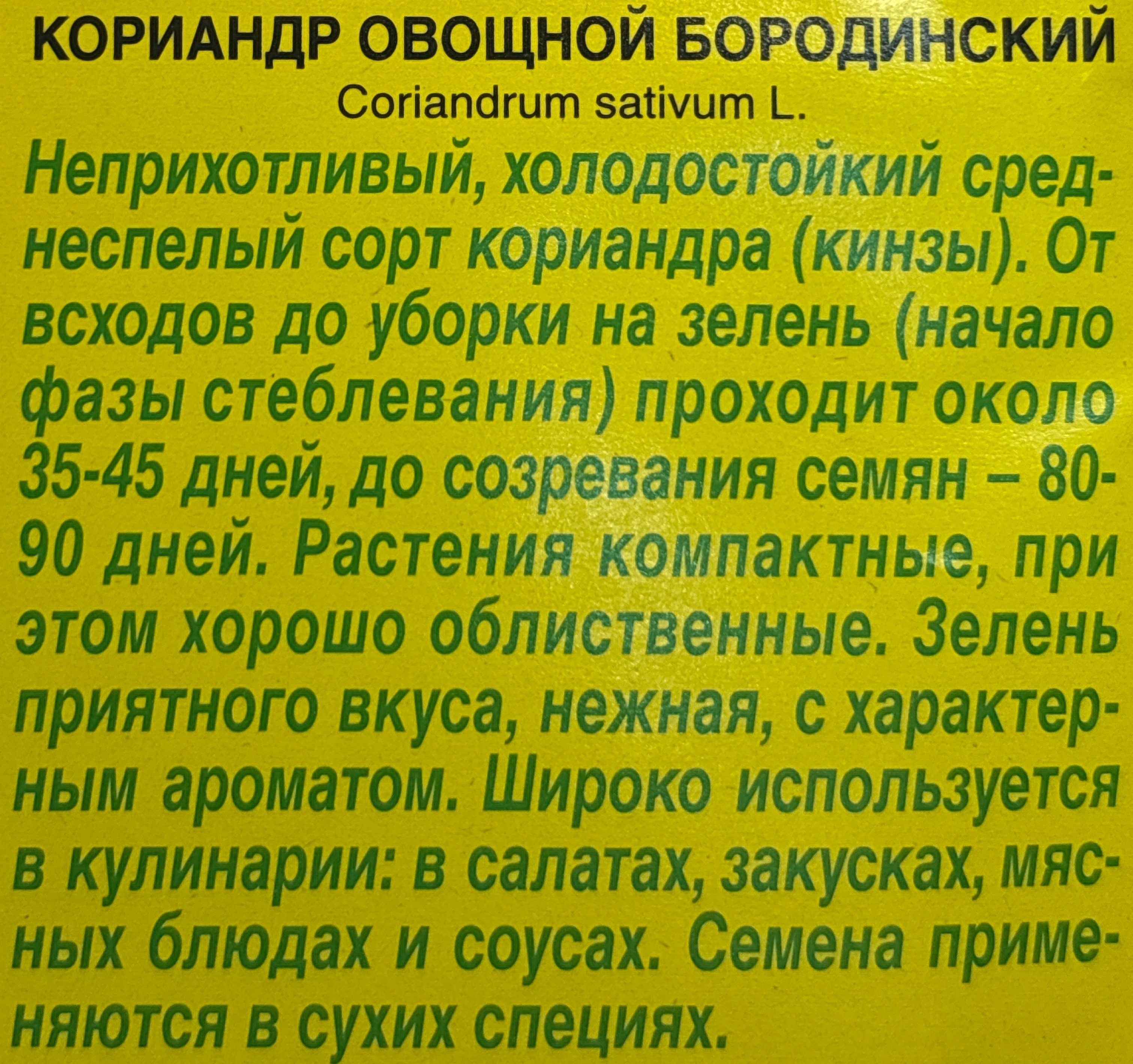 Кориандр Бородинский 3 г СМЗ-89