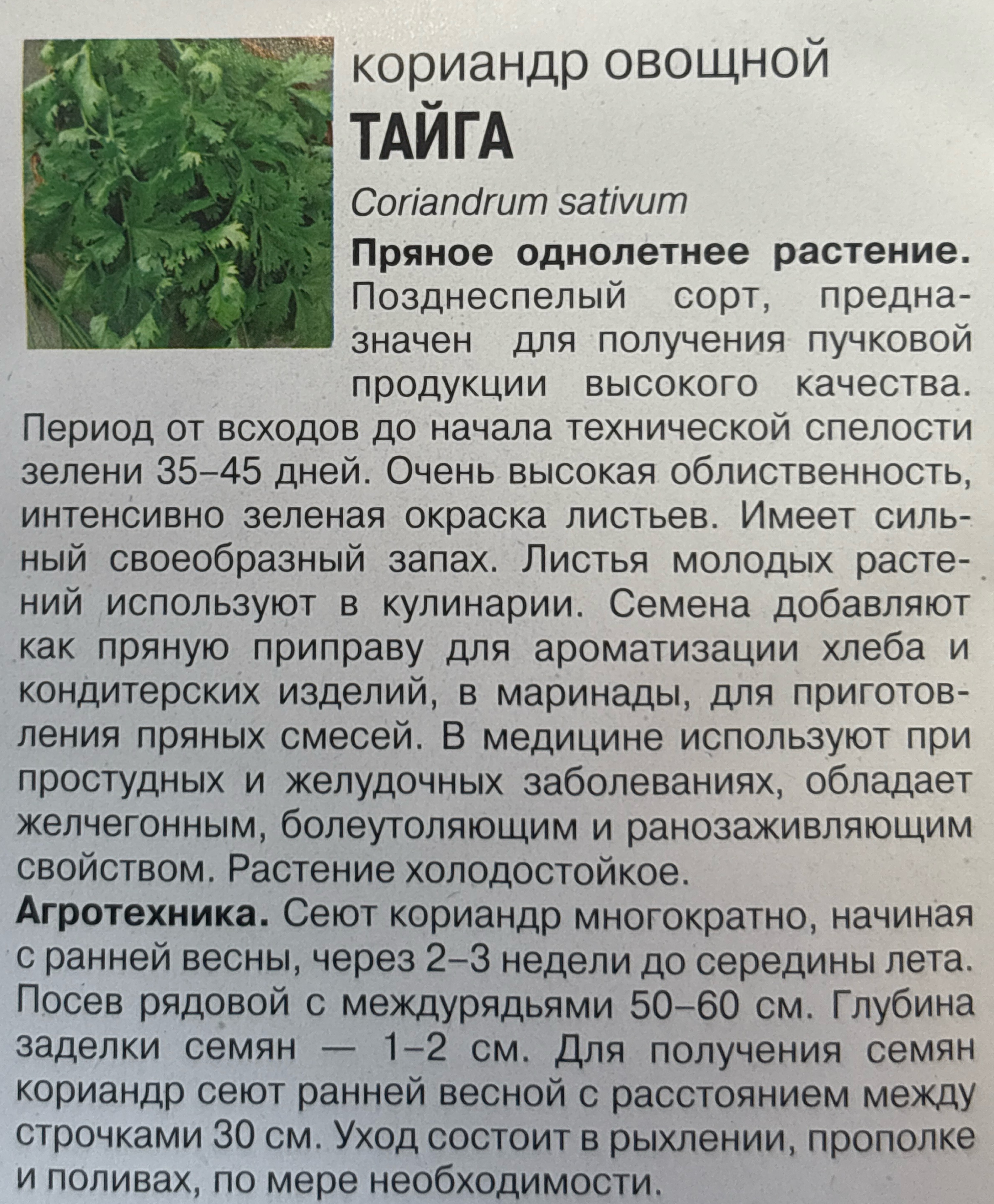 Кориандр Тайга 1 г СМЗ-82