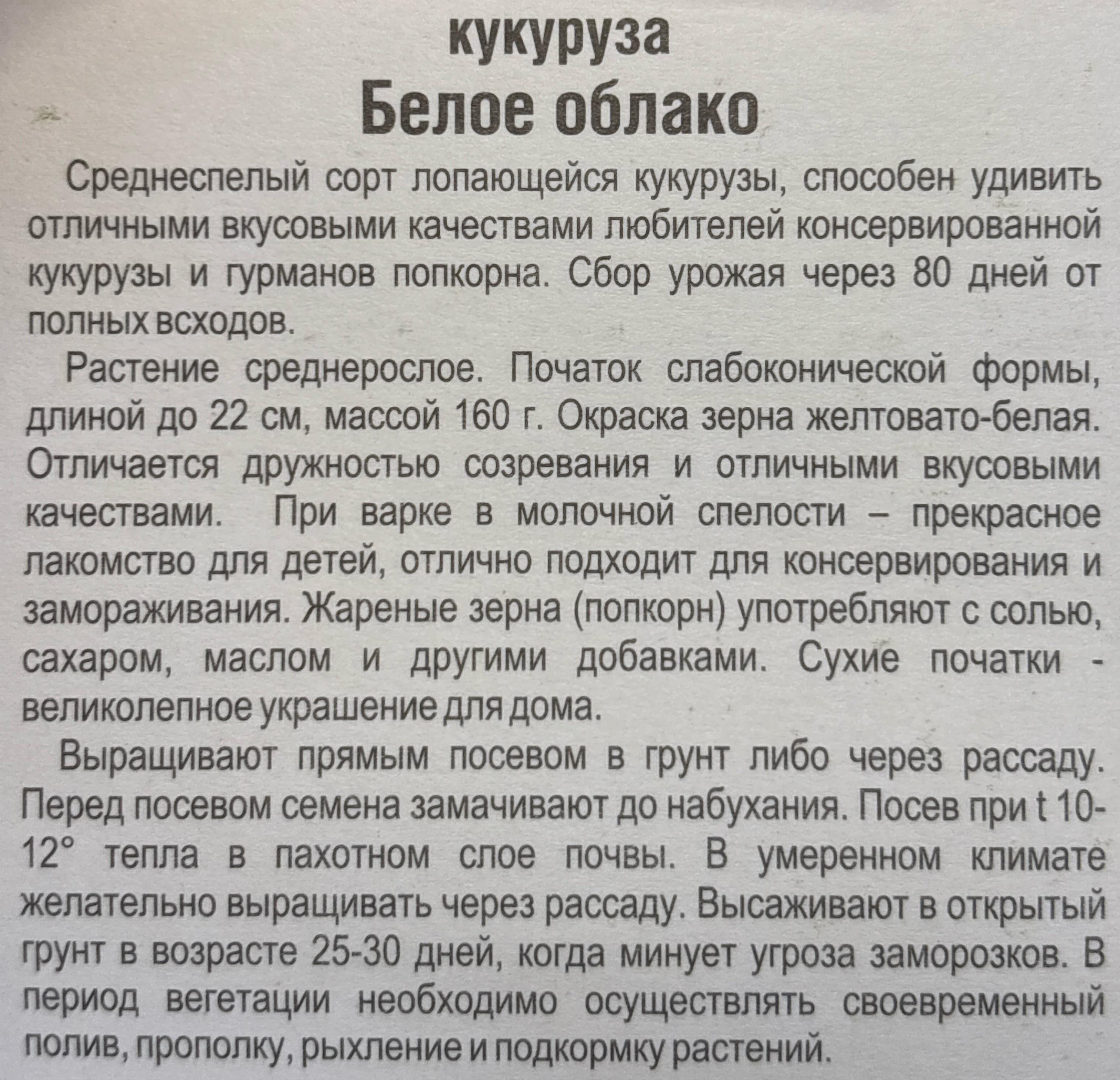 Кукуруза Белое облако 10 шт СМКУК-09