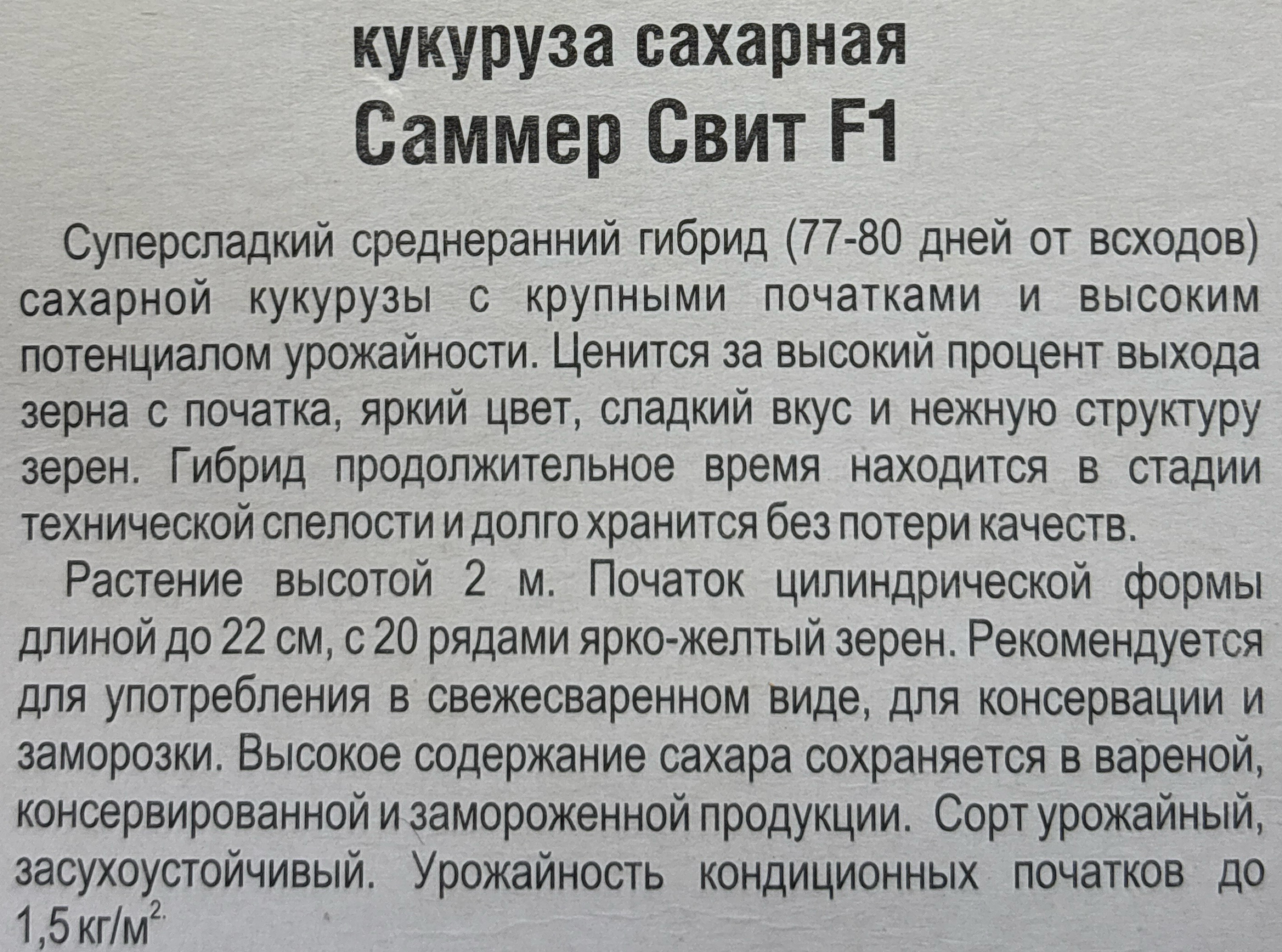 Кукуруза Саммер Свит F1 5 шт СМКУК-02