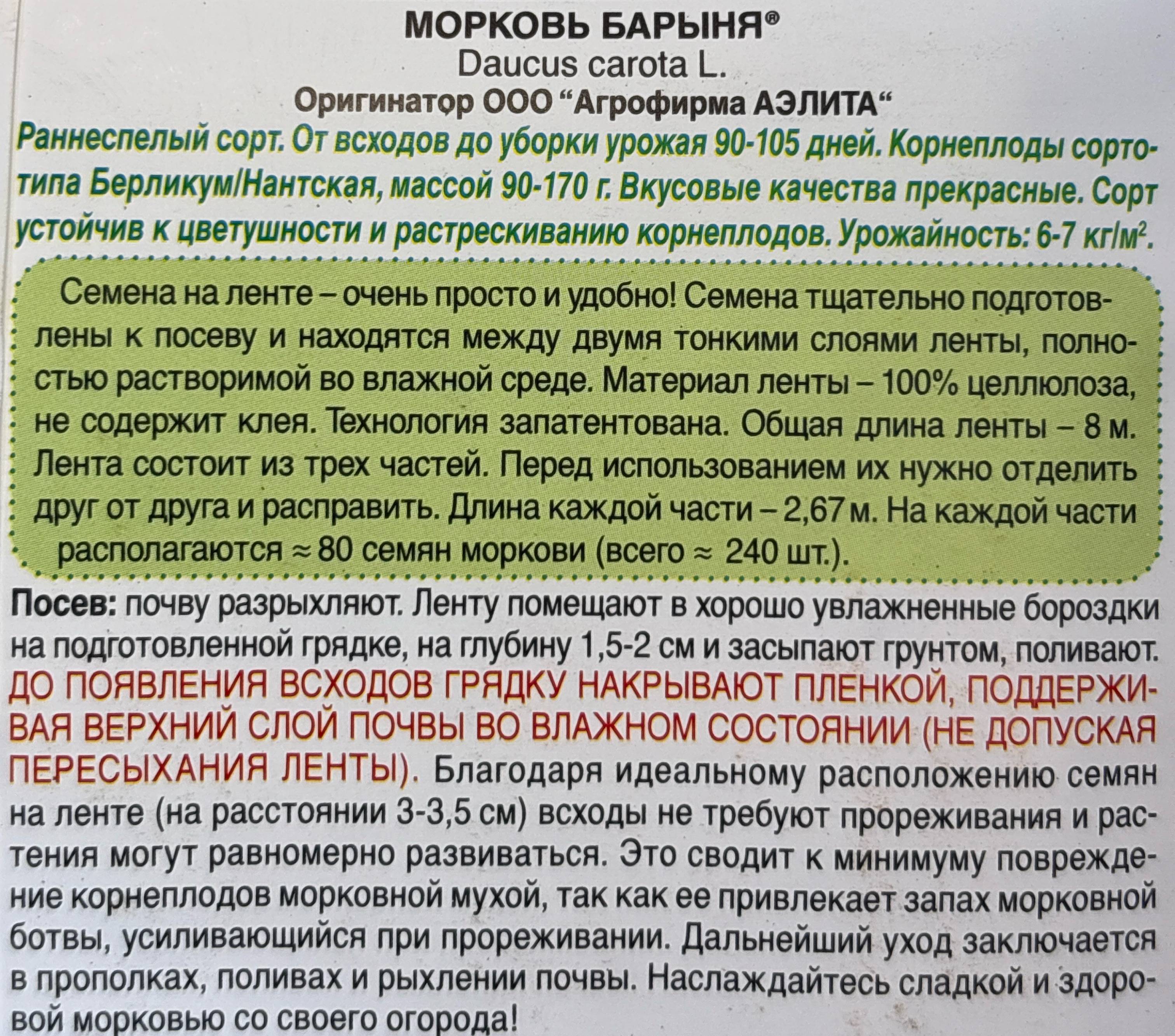 Морковь (лента) Барыня 8 м СММ-91