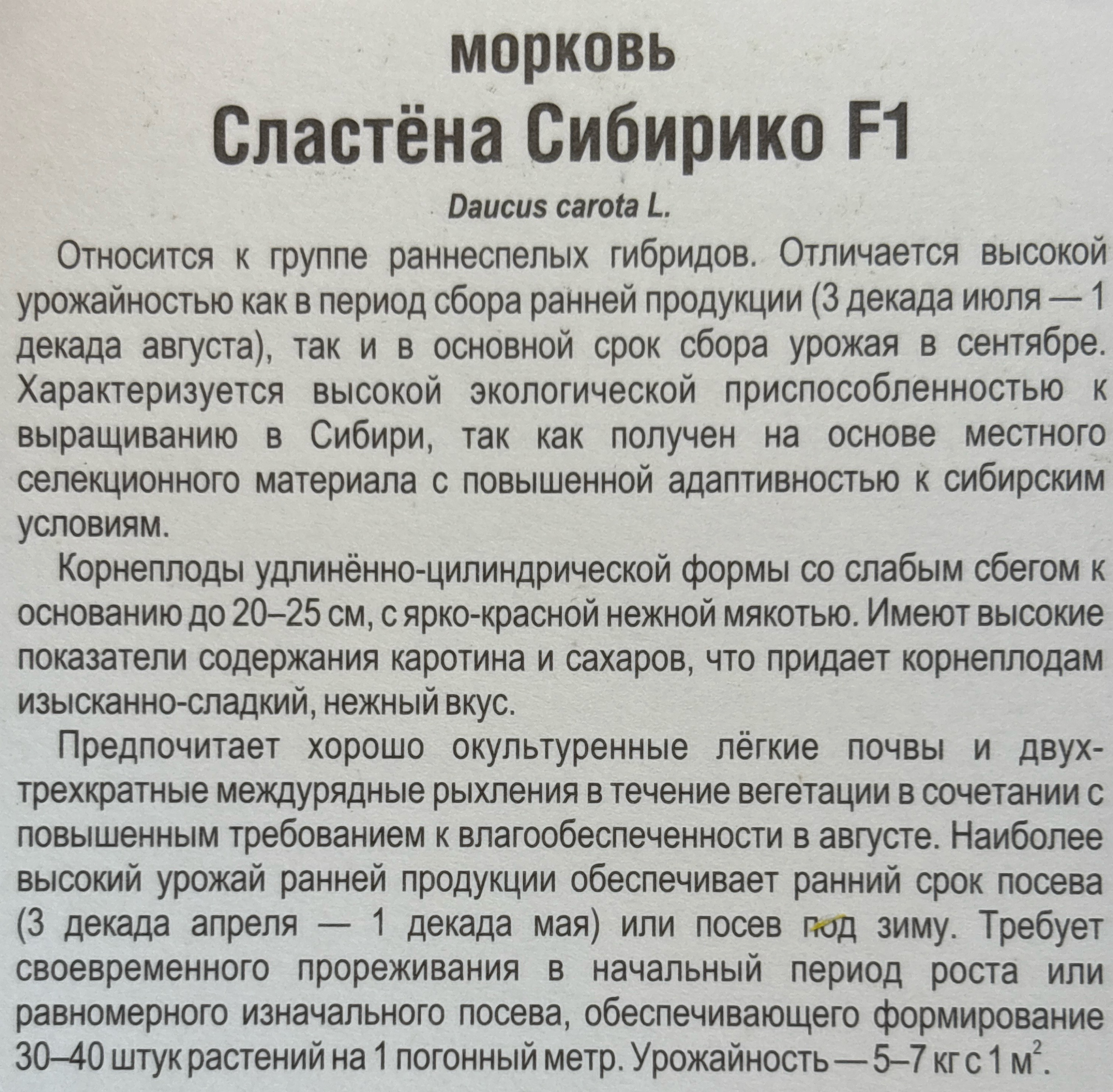 Морковь Сластена Сибирико F1 2 г СММ-08