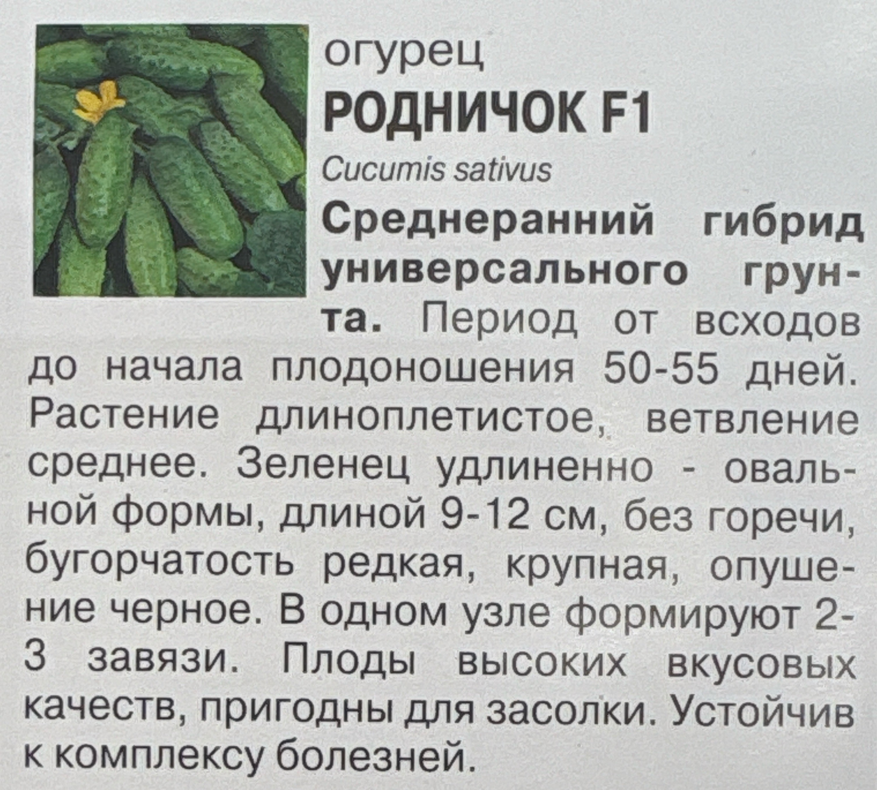 Огурец Родничок F1 0.3 г СМО-72