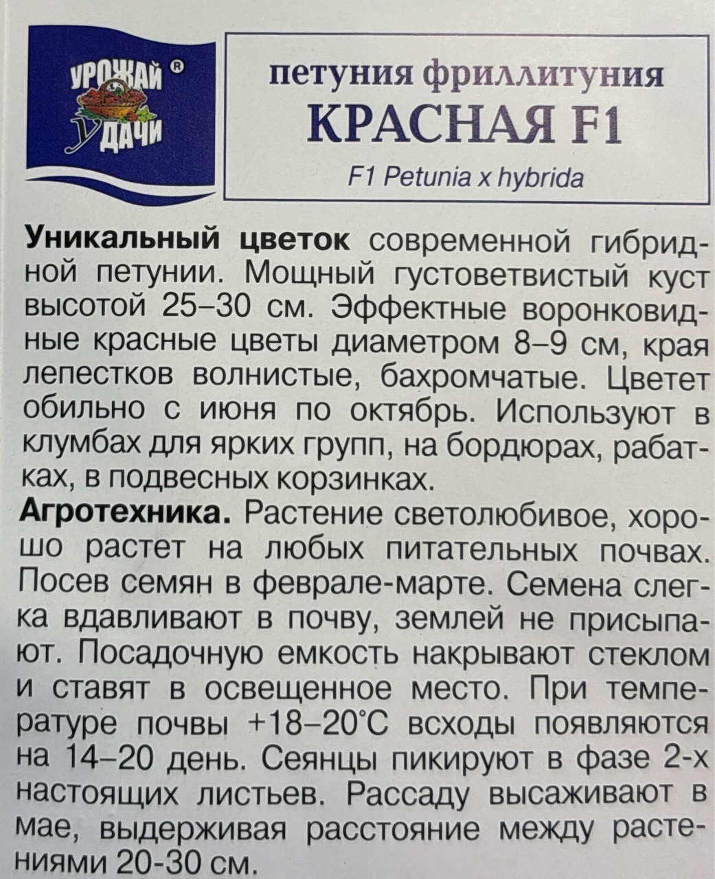 Петуния Фрилитуния Красная , 0,01г., Урожай Удачи СМЦ-150