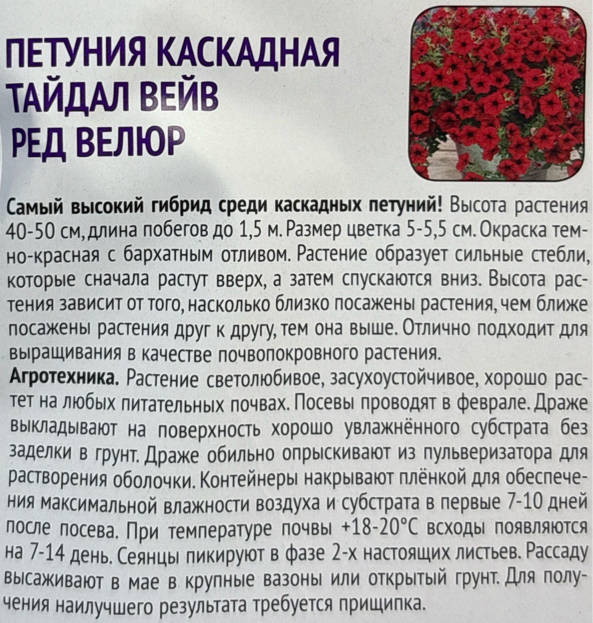 Петуния Тайдал Вейв Ред Велюр каскадная 5 шт рядом