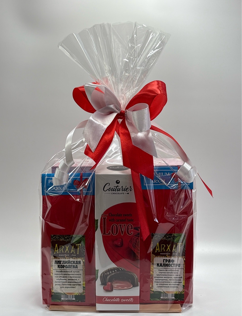 Подарочный набор 100326 арт! набор гель для душа+крем для тела\конфеты малина со сливками\чай архат 100гр
