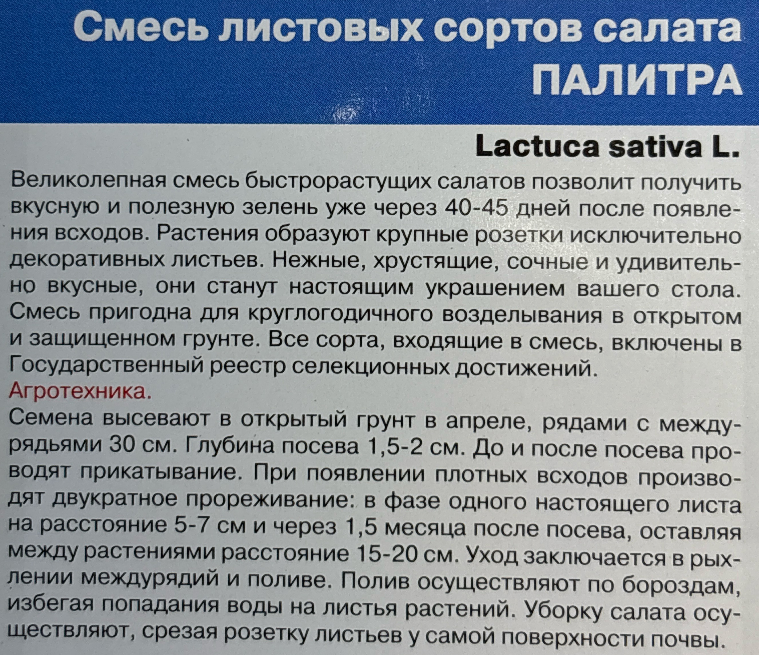 Салат Палитра, смесь 0,25 г СМЗ-166