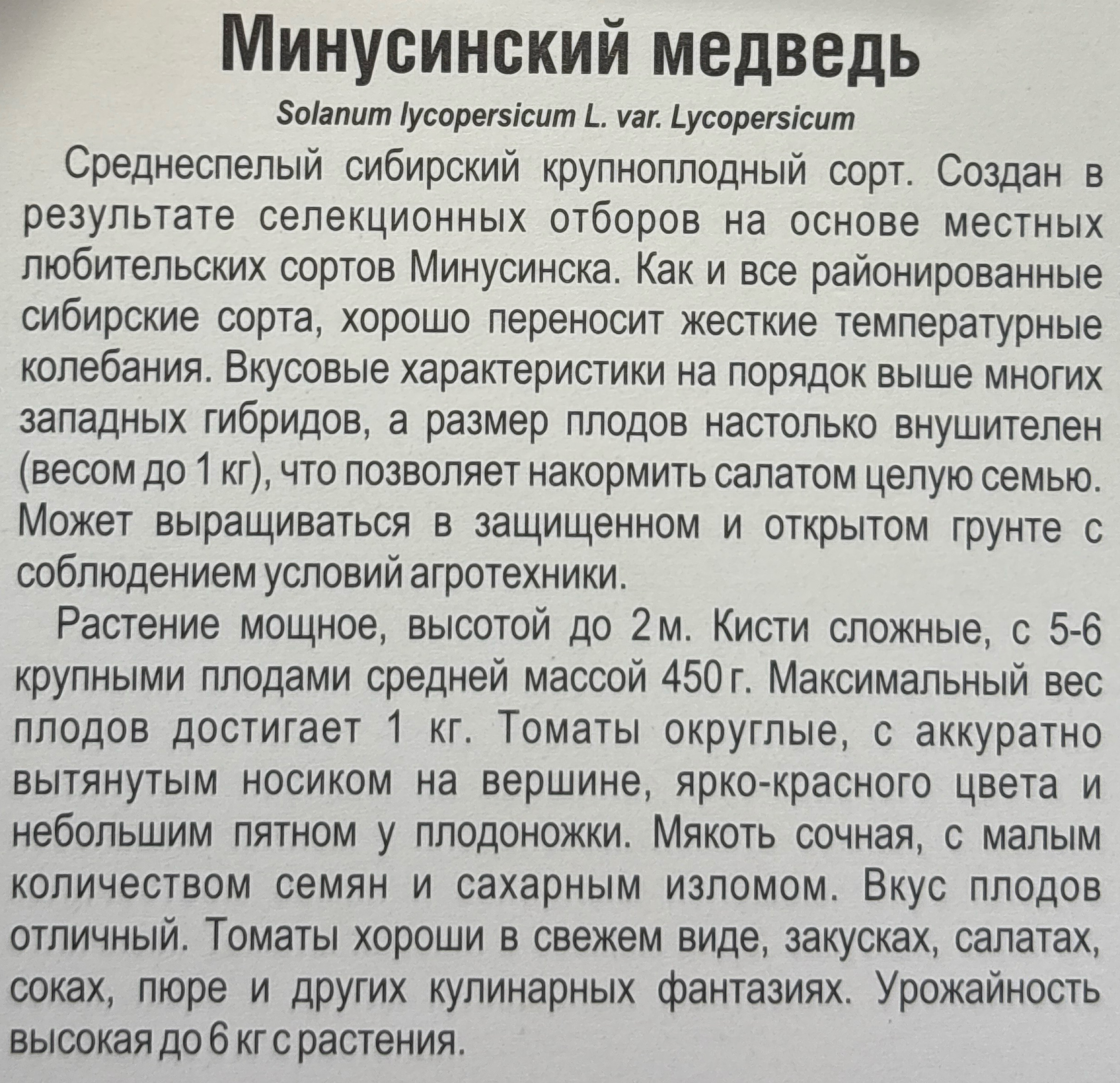 Томат Минусинский медведь 20 шт СМТ-460