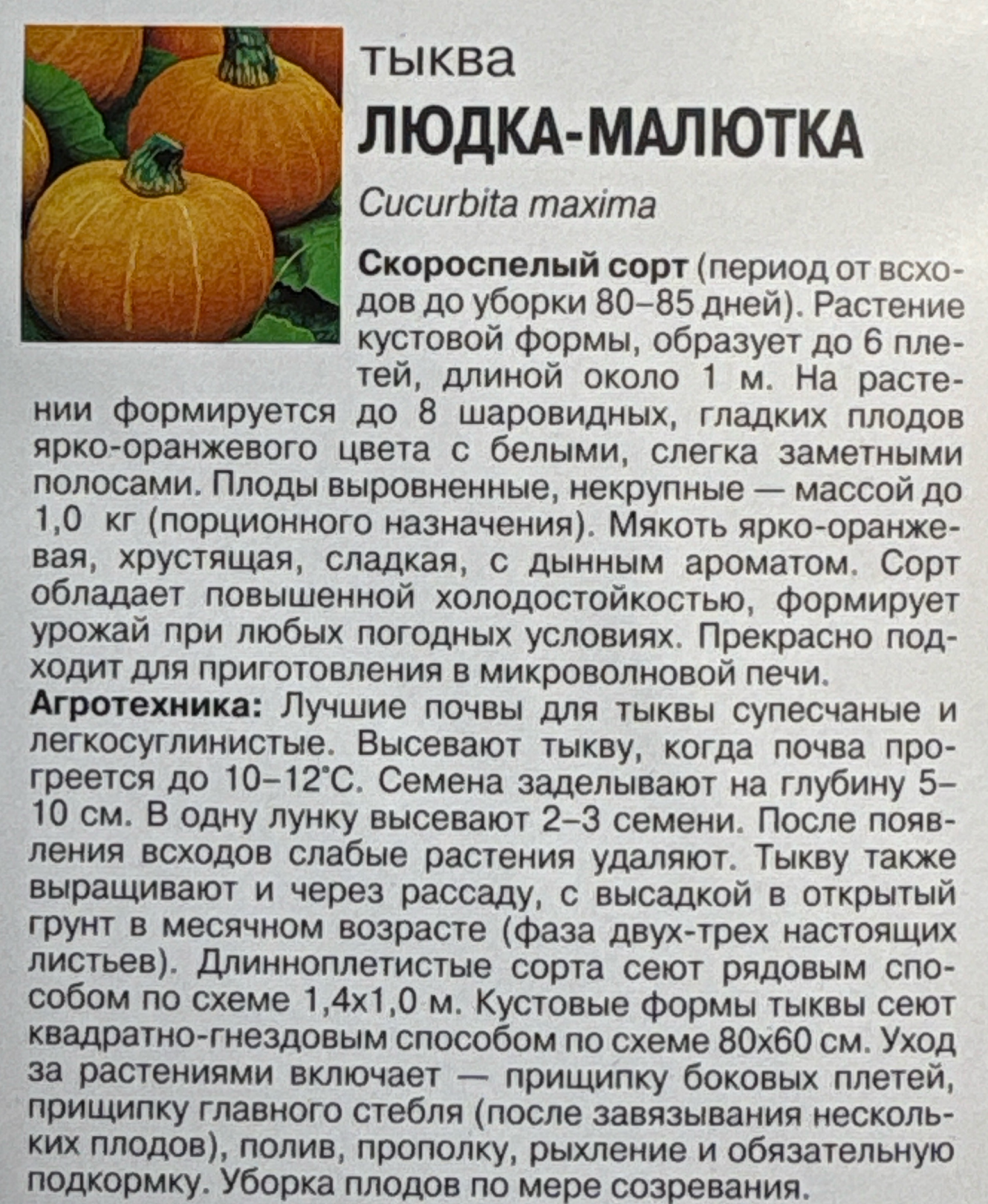 Тыква Людка-Малютка, 1г., Урожай Удачи СМТК-20